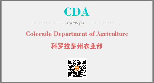 以上为Colorado Department of Agriculture英文缩略词CDA的中文解释,以及该英文缩写在英语的流行度、分类和应用领域方面的信息。