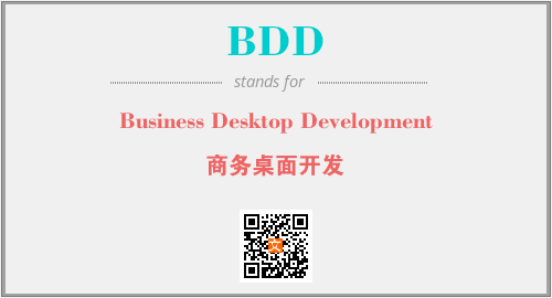 英文缩略词“BDD”经常作为“Business Desktop Development”的英文缩写来使用,中文表示:“商务桌面开发”。本文将详细介绍英文缩写词BDD所代表英文单词,其对应的中文拼音、详细解释以及在英语中的流行度。此外,还有关于缩略词BDD的分类、应用领域及相关应用示例等。