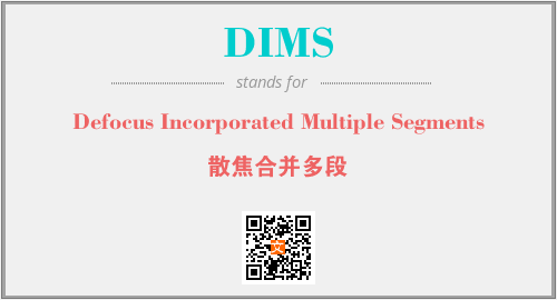 上述内容是“Defocus Incorporated Multiple Segments”作为“DIMS”的缩写,解释为“散焦合并多段”时的信息,以及英文缩略词DIMS所代表的英文单词,其对应的中文拼音、详细解释以及在英文中的流行度和相关分类、应用领域及应用示例等。
