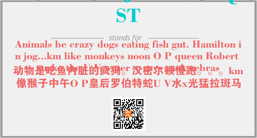 上述内容是“Animals be crazy dogs eating fish gut. Hamilton in jog...km like monkeys noon O P queen Robert snake the U V water x-rays yank zebras”作为“ABCDEFGHIJKLMNOPQRST”的缩写,解释为“动物是吃鱼内脏的疯狗。汉密尔顿慢跑。。。km像猴子中午O P皇后罗伯特蛇U V水x光猛拉斑马”时的信息,以及英文缩略词ABCDEFGHIJKLMNOPQRST所代表的英文单词,其对应的中文拼音、详细解释以及在英文中的流行度和相关分类、应用领域及应用示例等。