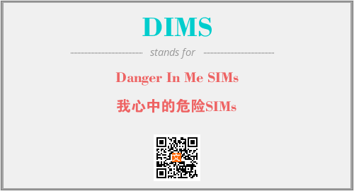 英文缩略词“DIMS”经常作为“Danger In Me SIMs”的英文缩写来使用,中文表示:“我心中的危险SIMs”。本文将详细介绍英文缩写词DIMS所代表英文单词,其对应的中文拼音、详细解释以及在英语中的流行度。此外,还有关于缩略词DIMS的分类、应用领域及相关应用示例等。