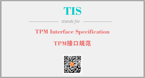 英文缩略词“TIS”经常作为“TPM Interface Specification”的英文缩写来使用,中文表示:“TPM接口规范”。本文将详细介绍英文缩写词TIS所代表英文单词,其对应的中文拼音、详细解释以及在英语中的流行度。此外,还有关于缩略词TIS的分类、应用领域及相关应用示例等。