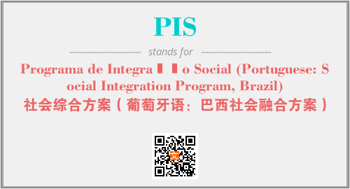 上述内容是“Programa de Integração Social (Portuguese: Social Integration Program, Brazil)”作为“PIS”的缩写,解释为“社会综合方案(葡萄牙语:巴西社会融合方案)”时的信息,以及英文缩略词PIS所代表的英文单词,其对应的中文拼音、详细解释以及在英文中的流行度和相关分类、应用领域及应用示例等。