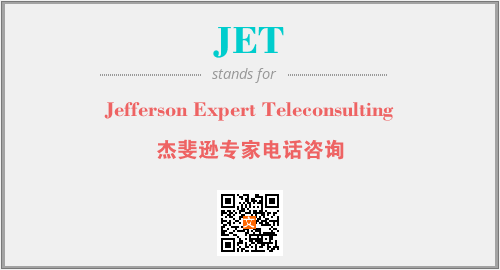上述内容是“Jefferson Expert Teleconsulting”作为“JET”的缩写,解释为“杰斐逊专家电话咨询”时的信息,以及英文缩略词JET所代表的英文单词,其对应的中文拼音、详细解释以及在英文中的流行度和相关分类、应用领域及应用示例等。