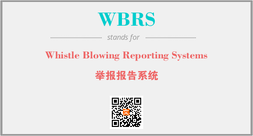 上述内容是“Whistle Blowing Reporting Systems”作为“WBRS”的缩写,解释为“举报报告系统”时的信息,以及英文缩略词WBRS所代表的英文单词,其对应的中文拼音、详细解释以及在英文中的流行度和相关分类、应用领域及应用示例等。