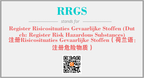上述内容是“Register Risicosituaties Gevaarlijke Stoffen (Dutch: Register Risk Hazardous Substances)”作为“RRGS”的缩写,解释为“注册Risicosituaties Gevaarlijke Stoffen(荷兰语:注册危险物质)”时的信息,以及英文缩略词RRGS所代表的英文单词,其对应的中文拼音、详细解释以及在英文中的流行度和相关分类、应用领域及应用示例等。