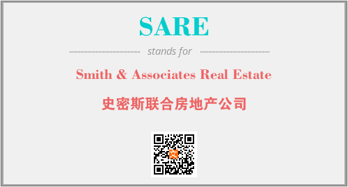 上述内容是“Smith & Associates Real Estate”作为“SARE”的缩写,解释为“史密斯联合房地产公司”时的信息,以及英文缩略词SARE所代表的英文单词,其对应的中文拼音、详细解释以及在英文中的流行度和相关分类、应用领域及应用示例等。