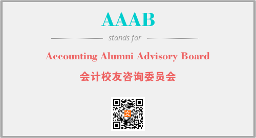 英文缩略词“AAAB”经常作为“Accounting Alumni Advisory Board”的英文缩写来使用,中文表示:“会计校友咨询委员会”。本文将详细介绍英文缩写词AAAB所代表英文单词,其对应的中文拼音、详细解释以及在英语中的流行度。此外,还有关于缩略词AAAB的分类、应用领域及相关应用示例等。