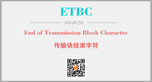 英文缩略词“ETBC”经常作为“End of Transmission Block Character”的英文缩写来使用,中文表示:“传输块结束字符”。本文将详细介绍英文缩写词ETBC所代表英文单词,其对应的中文拼音、详细解释以及在英语中的流行度。此外,还有关于缩略词ETBC的分类、应用领域及相关应用示例等。