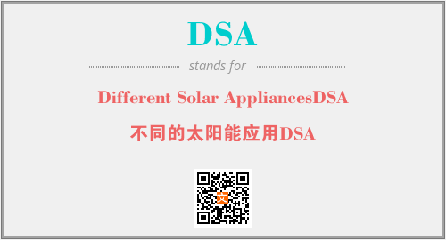 上述内容是“Different Solar AppliancesDSA”作为“DSA”的缩写,解释为“不同的太阳能应用DSA”时的信息,以及英文缩略词DSA所代表的英文单词,其对应的中文拼音、详细解释以及在英文中的流行度和相关分类、应用领域及应用示例等。
