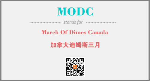 英文缩略词“MODC”经常作为“March Of Dimes Canada”的英文缩写来使用,中文表示:“加拿大迪姆斯三月”。本文将详细介绍英文缩写词MODC所代表英文单词,其对应的中文拼音、详细解释以及在英语中的流行度。此外,还有关于缩略词MODC的分类、应用领域及相关应用示例等。