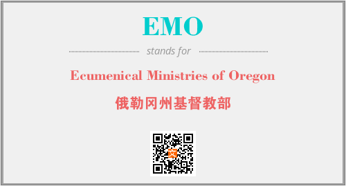 上述内容是“Ecumenical Ministries of Oregon”作为“EMO”的缩写,解释为“俄勒冈州基督教部”时的信息,以及英文缩略词EMO所代表的英文单词,其对应的中文拼音、详细解释以及在英文中的流行度和相关分类、应用领域及应用示例等。