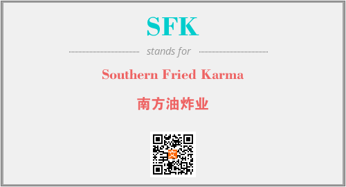 上述内容是“Southern Fried Karma”作为“SFK”的缩写,解释为“南方油炸业”时的信息,以及英文缩略词SFK所代表的英文单词,其对应的中文拼音、详细解释以及在英文中的流行度和相关分类、应用领域及应用示例等。
