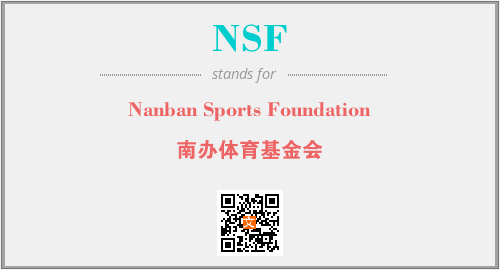 上述内容是“Nanban Sports Foundation”作为“NSF”的缩写,解释为“南办体育基金会”时的信息,以及英文缩略词NSF所代表的英文单词,其对应的中文拼音、详细解释以及在英文中的流行度和相关分类、应用领域及应用示例等。