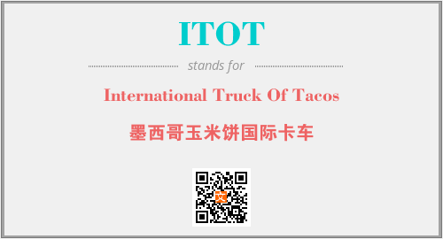 英文缩略词“ITOT”经常作为“International Truck Of Tacos”的英文缩写来使用,中文表示:“墨西哥玉米饼国际卡车”。本文将详细介绍英文缩写词ITOT所代表英文单词,其对应的中文拼音、详细解释以及在英语中的流行度。此外,还有关于缩略词ITOT的分类、应用领域及相关应用示例等。
