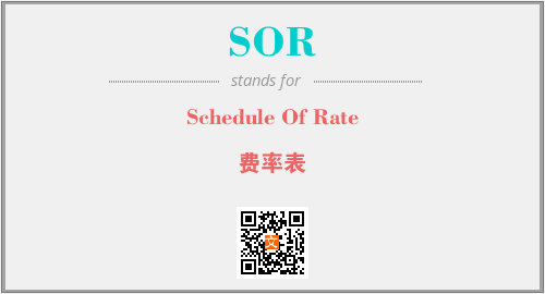 上述内容是“Schedule Of Rate”作为“SOR”的缩写,解释为“费率表”时的信息,以及英文缩略词SOR所代表的英文单词,其对应的中文拼音、详细解释以及在英文中的流行度和相关分类、应用领域及应用示例等。