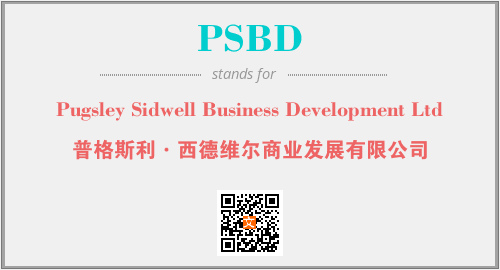 上述内容是“Pugsley Sidwell Business Development Ltd”作为“PSBD”的缩写,解释为“普格斯利·西德维尔商业发展有限公司”时的信息,以及英文缩略词PSBD所代表的英文单词,其对应的中文拼音、详细解释以及在英文中的流行度和相关分类、应用领域及应用示例等。