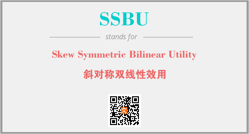 英文缩略词“SSBU”经常作为“Skew Symmetric Bilinear Utility”的英文缩写来使用,中文表示:“斜对称双线性效用”。本文将详细介绍英文缩写词SSBU所代表英文单词,其对应的中文拼音、详细解释以及在英语中的流行度。此外,还有关于缩略词SSBU的分类、应用领域及相关应用示例等。