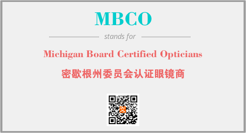上述内容是“Michigan Board Certified Opticians”作为“MBCO”的缩写,解释为“密歇根州委员会认证眼镜商”时的信息,以及英文缩略词MBCO所代表的英文单词,其对应的中文拼音、详细解释以及在英文中的流行度和相关分类、应用领域及应用示例等。