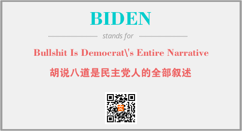 以上为Bullshit Is Democrat\'s Entire Narrative英文缩略词BIDEN的中文解释,以及该英文缩写在英语的流行度、分类和应用领域方面的信息。