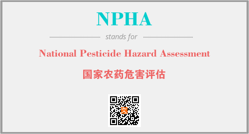 上述内容是“National Pesticide Hazard Assessment”作为“NPHA”的缩写,解释为“国家农药危害评估”时的信息,以及英文缩略词NPHA所代表的英文单词,其对应的中文拼音、详细解释以及在英文中的流行度和相关分类、应用领域及应用示例等。