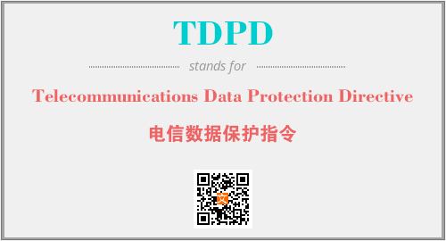 英文缩略词“TDPD”经常作为“Telecommunications Data Protection Directive”的英文缩写来使用,中文表示:“电信数据保护指令”。本文将详细介绍英文缩写词TDPD所代表英文单词,其对应的中文拼音、详细解释以及在英语中的流行度。此外,还有关于缩略词TDPD的分类、应用领域及相关应用示例等。
