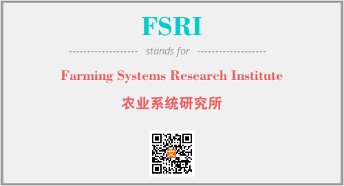 英文缩略词“FSRI”经常作为“Farming Systems Research Institute”的英文缩写来使用,中文表示:“农业系统研究所”。本文将详细介绍英文缩写词FSRI所代表英文单词,其对应的中文拼音、详细解释以及在英语中的流行度。此外,还有关于缩略词FSRI的分类、应用领域及相关应用示例等。