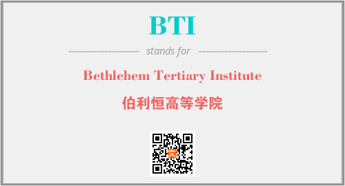 英文缩略词“BTI”经常作为“Bethlehem Tertiary Institute”的英文缩写来使用,中文表示:“伯利恒高等学院”。本文将详细介绍英文缩写词BTI所代表英文单词,其对应的中文拼音、详细解释以及在英语中的流行度。此外,还有关于缩略词BTI的分类、应用领域及相关应用示例等。