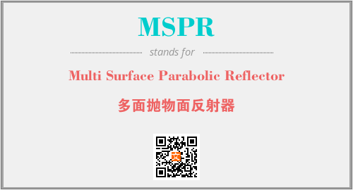 上述内容是“Multi Surface Parabolic Reflector”作为“MSPR”的缩写,解释为“多面抛物面反射器”时的信息,以及英文缩略词MSPR所代表的英文单词,其对应的中文拼音、详细解释以及在英文中的流行度和相关分类、应用领域及应用示例等。