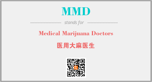 英文缩略词“MMD”经常作为“Medical Marijuana Doctors”的英文缩写来使用,中文表示:“医用大麻医生”。本文将详细介绍英文缩写词MMD所代表英文单词,其对应的中文拼音、详细解释以及在英语中的流行度。此外,还有关于缩略词MMD的分类、应用领域及相关应用示例等。