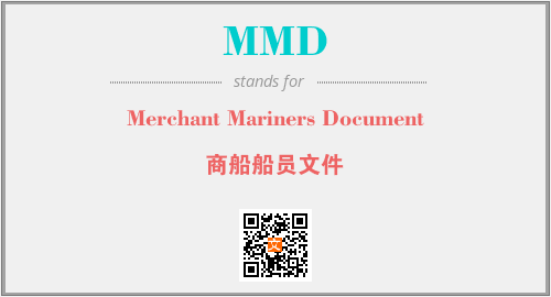 英文缩略词“MMD”经常作为“Merchant Mariners Document”的英文缩写来使用,中文表示:“商船船员文件”。本文将详细介绍英文缩写词MMD所代表英文单词,其对应的中文拼音、详细解释以及在英语中的流行度。此外,还有关于缩略词MMD的分类、应用领域及相关应用示例等。