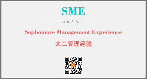 以上为Sophomore Management Experience英文缩略词SME的中文解释,以及该英文缩写在英语的流行度、分类和应用领域方面的信息。
