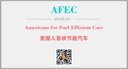上述内容是“Americans for Fuel Efficient Cars”作为“AFEC”的缩写,解释为“美国人喜欢节能汽车”时的信息,以及英文缩略词AFEC所代表的英文单词,其对应的中文拼音、详细解释以及在英文中的流行度和相关分类、应用领域及应用示例等。