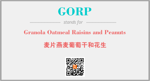 以上为Granola Oatmeal Raisins and Peanuts英文缩略词GORP的中文解释,以及该英文缩写在英语的流行度、分类和应用领域方面的信息。