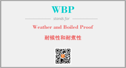 以上为Weather and Boiled Proof英文缩略词WBP的中文解释,以及该英文缩写在英语的流行度、分类和应用领域方面的信息。