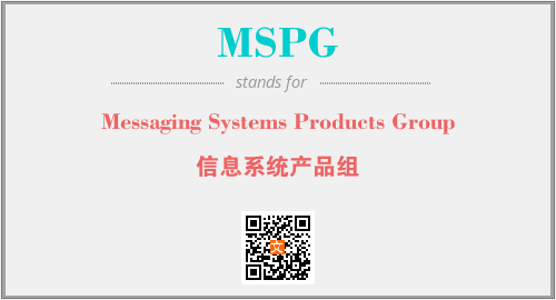 上述内容是“Messaging Systems Products Group”作为“MSPG”的缩写,解释为“信息系统产品组”时的信息,以及英文缩略词MSPG所代表的英文单词,其对应的中文拼音、详细解释以及在英文中的流行度和相关分类、应用领域及应用示例等。