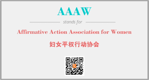 上述内容是“Affirmative Action Association for Women”作为“AAAW”的缩写,解释为“妇女平权行动协会”时的信息,以及英文缩略词AAAW所代表的英文单词,其对应的中文拼音、详细解释以及在英文中的流行度和相关分类、应用领域及应用示例等。