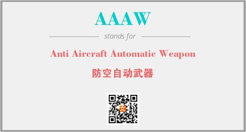 英文缩略词“AAAW”经常作为“Anti Aircraft Automatic Weapon”的英文缩写来使用,中文表示:“防空自动武器”。本文将详细介绍英文缩写词AAAW所代表英文单词,其对应的中文拼音、详细解释以及在英语中的流行度。此外,还有关于缩略词AAAW的分类、应用领域及相关应用示例等。