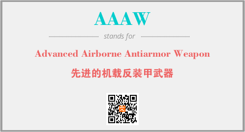 英文缩略词“AAAW”经常作为“Advanced Airborne Antiarmor Weapon”的英文缩写来使用,中文表示:“先进的机载反装甲武器”。本文将详细介绍英文缩写词AAAW所代表英文单词,其对应的中文拼音、详细解释以及在英语中的流行度。此外,还有关于缩略词AAAW的分类、应用领域及相关应用示例等。