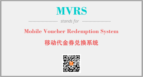 英文缩略词“MVRS”经常作为“Mobile Voucher Redemption System”的英文缩写来使用,中文表示:“移动代金券兑换系统”。本文将详细介绍英文缩写词MVRS所代表英文单词,其对应的中文拼音、详细解释以及在英语中的流行度。此外,还有关于缩略词MVRS的分类、应用领域及相关应用示例等。