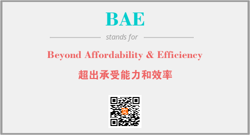 上述内容是“Beyond Affordability & Efficiency”作为“BAE”的缩写,解释为“超出承受能力和效率”时的信息,以及英文缩略词BAE所代表的英文单词,其对应的中文拼音、详细解释以及在英文中的流行度和相关分类、应用领域及应用示例等。
