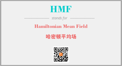 上述内容是“Hamiltonian Mean Field”作为“HMF”的缩写,解释为“哈密顿平均场”时的信息,以及英文缩略词HMF所代表的英文单词,其对应的中文拼音、详细解释以及在英文中的流行度和相关分类、应用领域及应用示例等。