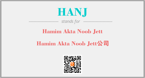 上述内容是“Hamim Akta Noob Jett”作为“HANJ”的缩写,解释为“Hamim Akta Noob Jett公司”时的信息,以及英文缩略词HANJ所代表的英文单词,其对应的中文拼音、详细解释以及在英文中的流行度和相关分类、应用领域及应用示例等。