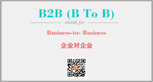 英文缩略词“B2B (B To B)”经常作为“Business-to- Business”的英文缩写来使用,中文表示:“企业对企业”。本文将详细介绍英文缩写词B2B (B To B)所代表英文单词,其对应的中文拼音、详细解释以及在英语中的流行度。此外,还有关于缩略词B2B (B To B)的分类、应用领域及相关应用示例等。