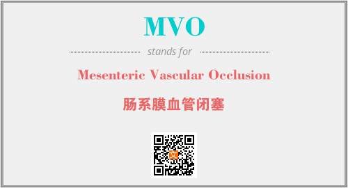英文缩略词“MVO”经常作为“Mesenteric Vascular Occlusion”的英文缩写来使用,中文表示:“肠系膜血管闭塞”。本文将详细介绍英文缩写词MVO所代表英文单词,其对应的中文拼音、详细解释以及在英语中的流行度。此外,还有关于缩略词MVO的分类、应用领域及相关应用示例等。