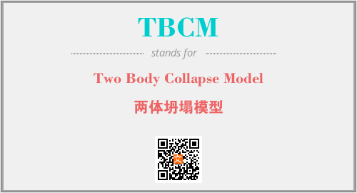 上述内容是“Two Body Collapse Model”作为“TBCM”的缩写,解释为“两体坍塌模型”时的信息,以及英文缩略词TBCM所代表的英文单词,其对应的中文拼音、详细解释以及在英文中的流行度和相关分类、应用领域及应用示例等。