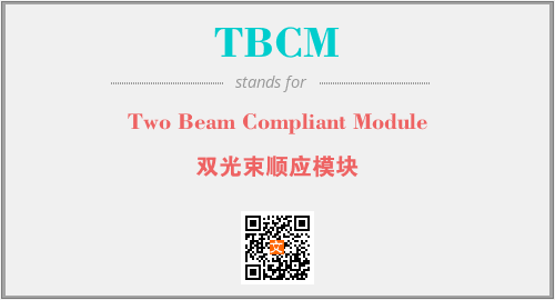 上述内容是“Two Beam Compliant Module”作为“TBCM”的缩写,解释为“双光束顺应模块”时的信息,以及英文缩略词TBCM所代表的英文单词,其对应的中文拼音、详细解释以及在英文中的流行度和相关分类、应用领域及应用示例等。