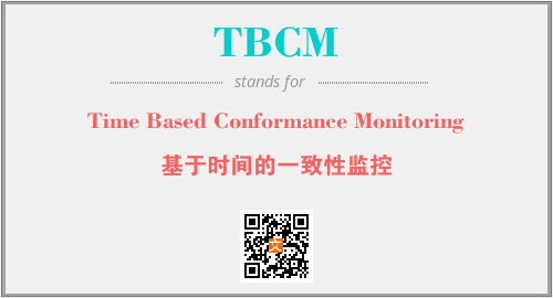 上述内容是“Time Based Conformance Monitoring”作为“TBCM”的缩写,解释为“基于时间的一致性监控”时的信息,以及英文缩略词TBCM所代表的英文单词,其对应的中文拼音、详细解释以及在英文中的流行度和相关分类、应用领域及应用示例等。