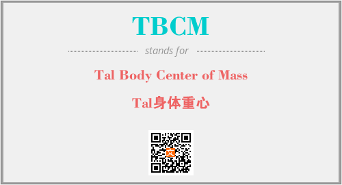 英文缩略词“TBCM”经常作为“Tal Body Center of Mass”的英文缩写来使用,中文表示:“Tal身体重心”。本文将详细介绍英文缩写词TBCM所代表英文单词,其对应的中文拼音、详细解释以及在英语中的流行度。此外,还有关于缩略词TBCM的分类、应用领域及相关应用示例等。