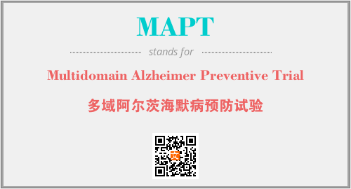 以上为Multidomain Alzheimer Preventive Trial英文缩略词MAPT的中文解释,以及该英文缩写在英语的流行度、分类和应用领域方面的信息。